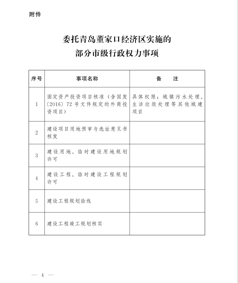 ? ? 附件:委托青島董家口經(jīng)濟(jì)區(qū)實施的部分市級行政權(quán)力事項